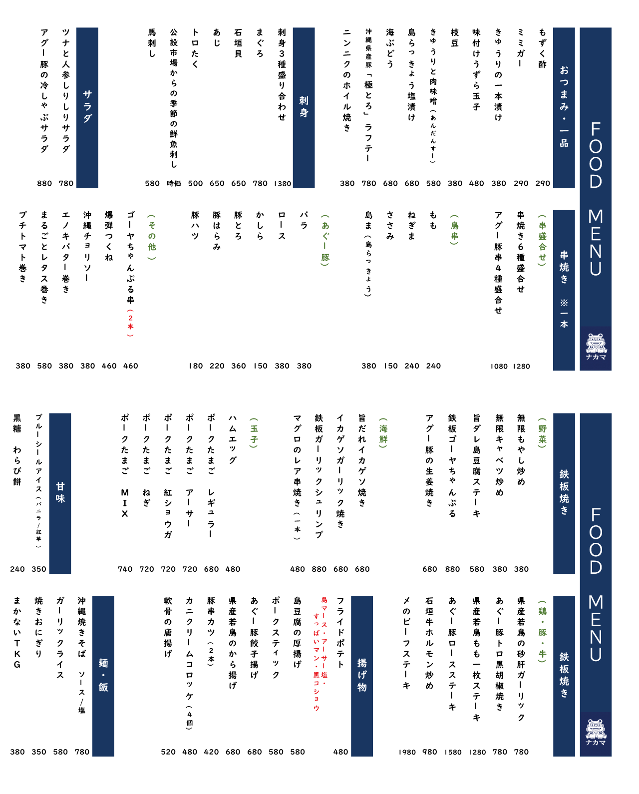 あぐー豚、県産地鶏、島野菜など地元食材を中心に、お酒に合う料理をご提供します。